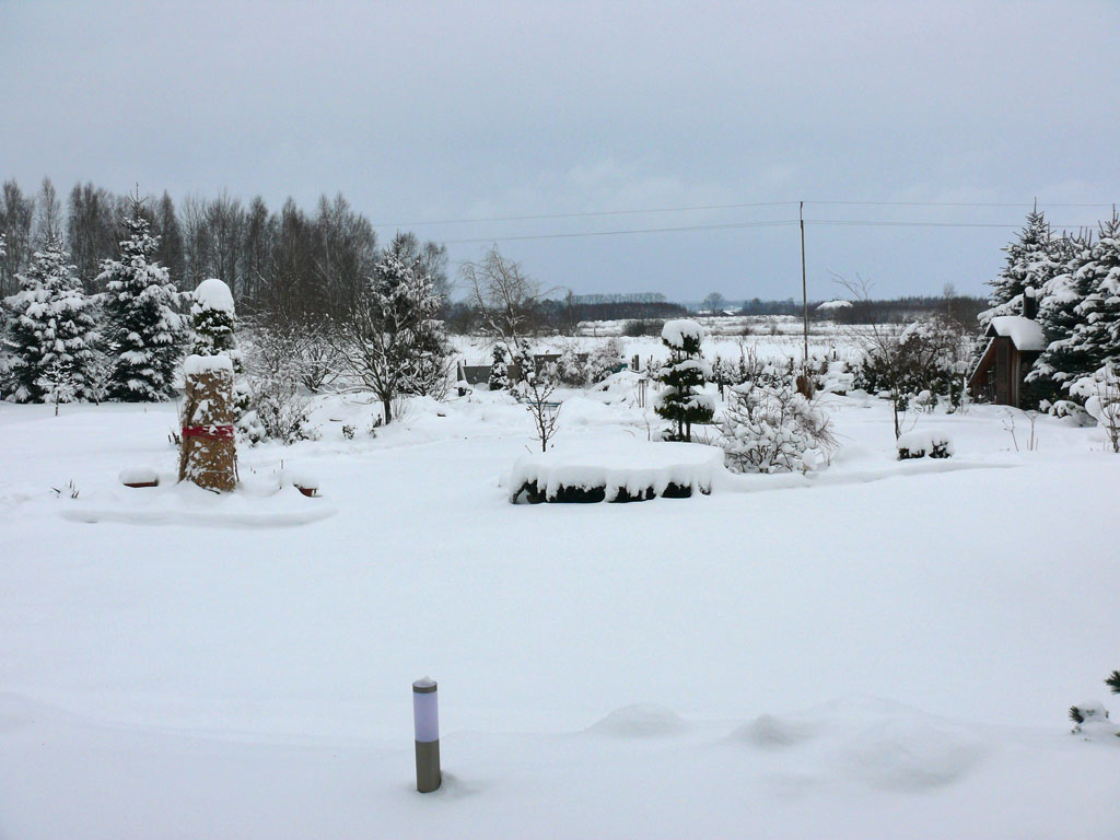 Położenie działki (bliskość jeziora) sprawiało, że woda gruntowa ma tu spore wachania. Wiosną i jesienią grunt zamienia sie w małe trzęsawisko. Takie mam odczucia. Woda występuje już na 60-70 cm. Oczko leży w dolnej części działki. Z tego powodu budując dom nie zdecydowałem się na piwnicę.