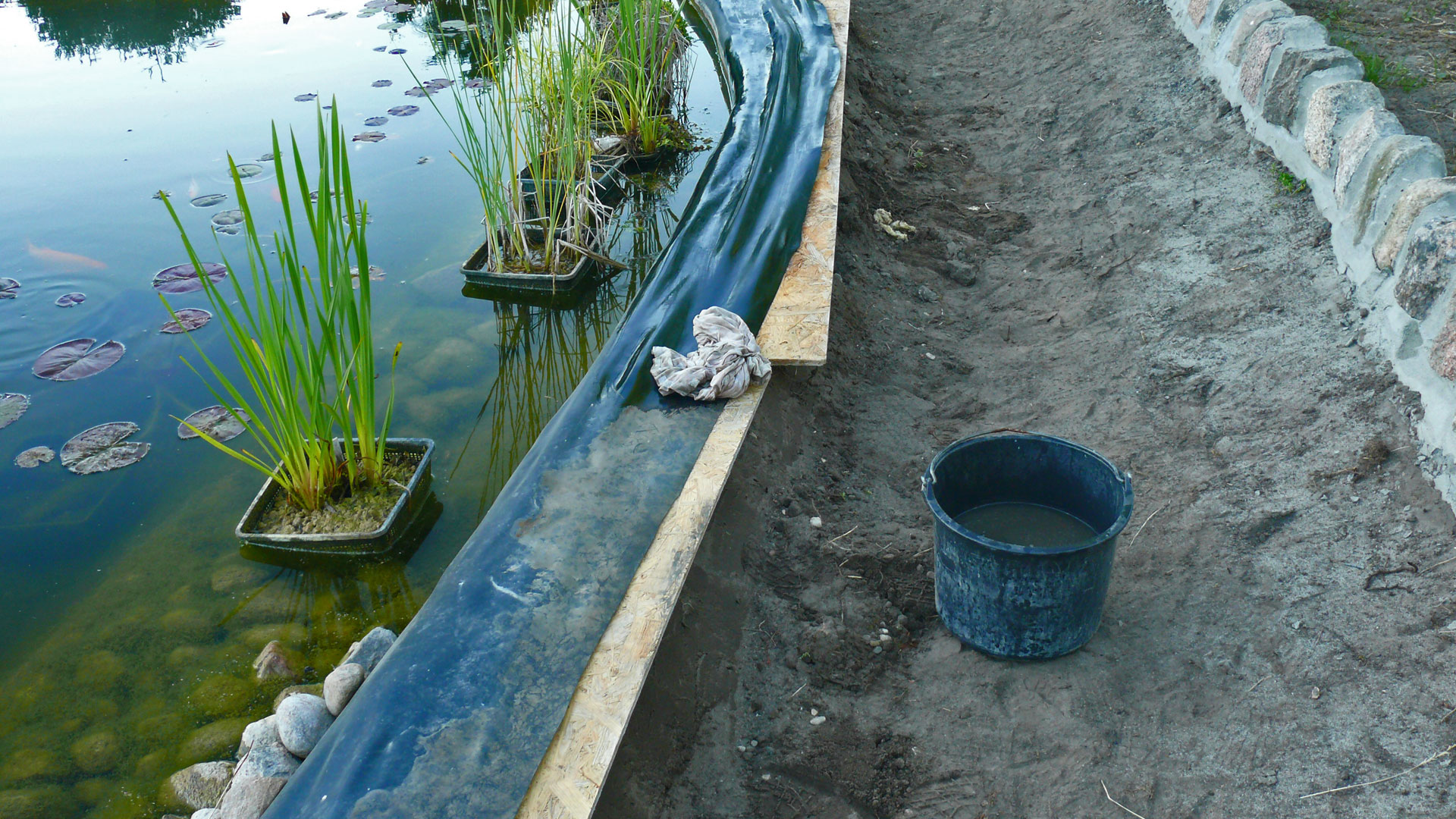 Przyszedł czas na zalanie części strumieniowej i zlikwidowanie rurociągu dostarczającego wodę do oczka.