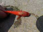 od kilku lat zimowałam rybki w wannie w pomieszczeniu gospodarczym. W tym roku ze względu na utrzymujące się dodatnie temperatury zostawiłam ryby w oczku (oczko około 4x3x1,5m). Dziś jedna z rybek wygląda tak: