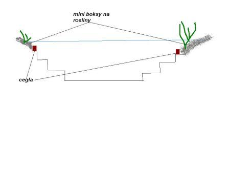 Galerie mojego oczka zakladam juz teraz gdzyz pojawil sie pewien problem z zamaskowaniem brzgu. Nie mam mozliwosci zakupu kamieni do oczka wodnego poza wapieniem ktorego jest najwiecej w regionie ktorym mieszkam wiec postanowilem brzegi wylozyc zwirem i tu moje pytanie jak zabespieczyc zwir przed osuwaniem na dno prosze o pomoc dolaczam schematyczny rysunek.