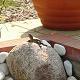 Dla dodania uroku zrobiliśmy ze szczytu muru wodospad. Jest to kawałek płaskiego kamienia leżący lużno na szczycie. Na jego powierzchni przykleiłem zaprawą dwa mniejsze płaskie kamienie (zapobiegają rozlewaniu się wody na boki) oraz jeden większych na nim, który maskuje doprowadzoną rurę. Od spodu dolnego kamienia jest zamocowany kawałek ocynkowanej blachy (zapobiega zaciekaniu wody na mur) i całość zamaskowana matą kokosową.