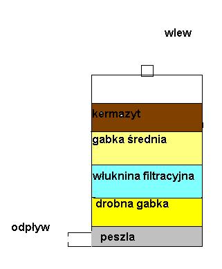Mateusz proponowana kolejność nie jest zbyt dobra z punktu wodzenia filtracji biologicznej- peszel czy keramzyt powinny być na końcu jako złoże biologiczne i tam powinna docierać już czysta woda, aby nie zalepiać osadem porów i powierzchni czynnej.